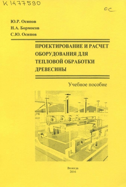 Осипов Ю. Р. Проектирование и расчет оборудования для тепловой обработки древесины : учебное пособие / Ю. Р. Осипов, Н. А. Бормосов, С. Ю. Осипов ; М-во образования и науки Рос. Федерации, Вологод. гос. ун-т. - Вологда : ВоГУ, 2016. - 150 с. : ил. - ISBN 978-5-97851-656-3.