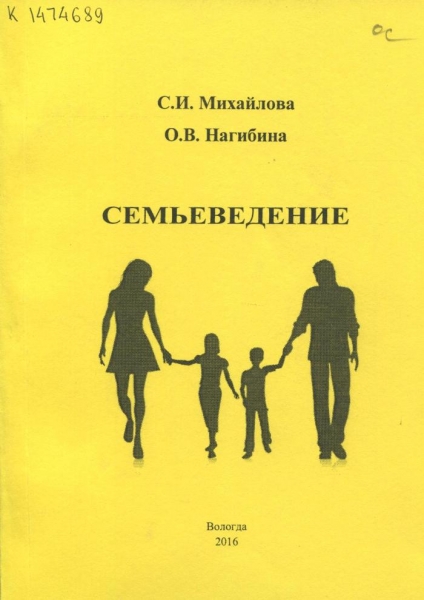 Михайлова С. И. Семьеведение : учебное пособие [для студентов, обучающихся по направлению подготовки 39.03.02 «Социальная работа» / С. И. Михайлова, О. В. Нагибина ; М-во образования и науки Рос. федерации, Вологод. гос. ун-т. - Вологда : ВоГУ, 2016. - 123 с. : ил., табл. - ISBN 978-5-87851-655-6.