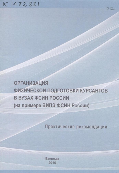 Организация физической подготовки курсантов в вузах ФСИН России : (на примере ВИПЭ ФСИН России) : практические рекомендации / Федер. служба исполн. наказаний, Вологод. ин-т права и экономики ; [Г. А. Ушаков и др.]. - Вологда : ВИПЭ ФСИН России, 2016. - 57 с. : ил., табл. - ISBN 978-5-94991-350-5.