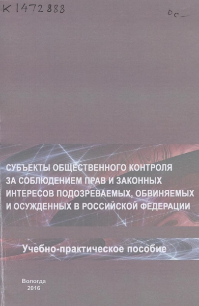 Субъекты общественного контроля за соблюдением прав и законных интересов подозреваемых, обвиняемых и осужденных в Российской Федерации : учебно-практическое пособие / Федер. служба исполн. наказаний, Вологод. ин-т права и экономики ; [Н. Н. Кириловская и др.]. - Вологда : ВИПЭ ФСИН России, 2016. - 133 с. - ISBN 978-5-94991-348-2.