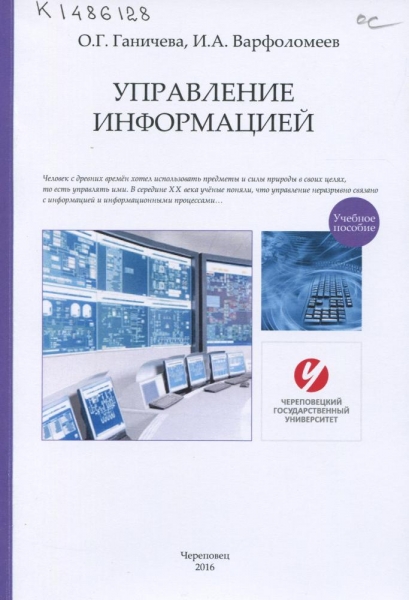 Ганичева О. Г. Управление информацией : учебное пособие / О. Г. Ганичева, И. А. Варфоломеев ; Череповец. гос. ун-т. - Череповец : ЧГУ, 2016. - 98 с. : ил. - ISBN 978-5-85341-714-4.