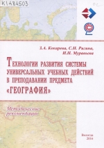 Кокарева З. А. Технологии развития системы универсальных учебных действий в преподавании предмета «География» : методические рекомендации / З. А. Кокарева, С. Н. Ригина, И. Н. Муравьева ; [науч. ред. О. А. Золотова] ; Департамент образования Вологод. обл., Вологод. ин-т развития образования. - Вологда : ВИРО, 2016 (Череповец : ЧГУ). - 31 с. : ил. - ISBN 978-5-87590-450-9.