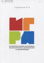 Гороховская И. В. Игра: воспитательный потенциал, педагогическое руководство и организация : учебно-методическое пособие / И. В. Гороховская ; [науч. ред. М. А. Улицкая] ; ГОУ СПО «Вологод. пед. колледж». - [4-е изд., доп.]. - Вологда : Арника, 2016. - 99, [1] с. : ил., табл. - ISBN 978-5-89791-060-1.