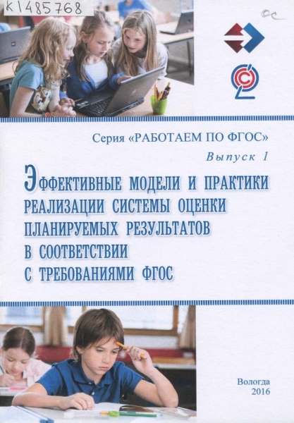 Эффективные модели и практики реализации системы оценки планируемых результатов в соответствии с требованиями ФГОС / [З. А. Кокарева, Н. Ю. Степанова, И. Н. Кожевникова ; науч. ред. Е. А. Никодимова] ; Вологод. ин-т развития образования, Департамент образования Вологод. обл.. - Вологда : ВИРО, 2016. - 79 с. : ил., табл. - (Серия «Работаем по ФГОС» ; вып. 1) - ISBN 978-5-89590-457-8.