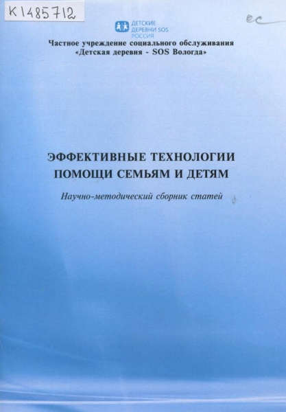 Эффективные технологии помощи семьям и детям : научно-методический сборник статей / Част. учреждение соц. обслуживания «Дет. деревня - SOS Вологда» ; [науч. ред.: Черствая О. Е.]. - Вологда : Леда, 2016. - 48 с. - (Детские деревни SOS Россия). - ISBN 978-5-904459-10-9.