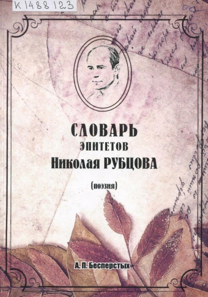 Бесперстых А. П. Словарь эпитетов Николая Рубцова : (поэзия) / А. П. Бесперстых ; [предисл. : Л. П. Федунова, Л. Н. Вересов]. - Вологда : Сад-огород, 2016. - 341, [2] с. : портр. - 12+. - ISBN 978-5-906850-39-3.