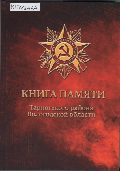 Книга памяти Тарногского района Вологодской области / Вологодский поисковый отряд ; составитель: Щёкотова Ю. В. ; редколлегия: Щёкотова Ю. В. (ответственный редактор) [и др.]. – Вологда : Арника, 2020. – 231 с. : ил., портр. ; 22 см. – 1000 экз. – ISBN 978-5-4429-0072-9.