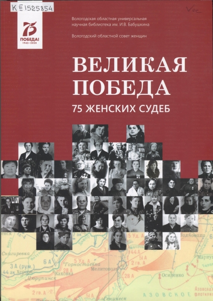 Великая Победа : 75 женских судеб / Вологодский областной совет женщин, Вологодская областная универсальная научная библиотека им. И. В. Бабушкина ; редколлегия: Т. Н. Буханцева (ответственный редактор) [и др.; предисловие: Л. Г. Ячеистова]. – Вологда : ВОУНБ, 2020 (Череповец : Череповецъ). – 186 с. : ил., портр., факс. ; 30 см. – 500 экз. – ISBN 978-5-94022-093-0.