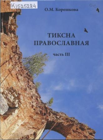 Корешкова Ольга Михайловна. Тиксна православная. Часть 3. Без храма / О. М. Корешкова. – Вологда : Полиграф-Периодика, 2020. – 246 с., [8] л. ил., портр., факс. : ; 20 см. – Библиогр. в конце глав. – 250 экз. – ISBN 978-5-91965-222-9.