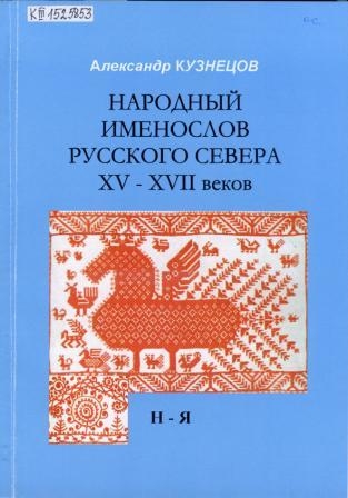 Кузнецов Александр Васильевич. Народный именослов Русского Севера XV - XVII веков. В 2 томах : происхождение имен (прозвищ), отчеств, названий деревень. Том 2. Н - Я / составитель: А. В. Кузнецов. – Вологда : ВОУНБ, 2020. – 184 с. ; 29 см. – Библиография: с. 164-177. – Алфавитный перечень авторов, составителей, редакторов и публикаторов документов : с. 178-180. – Указатель названий уездов, городов, монастырей: с. 181. – 50 экз. – ISBN 978-5-904318-71-0.