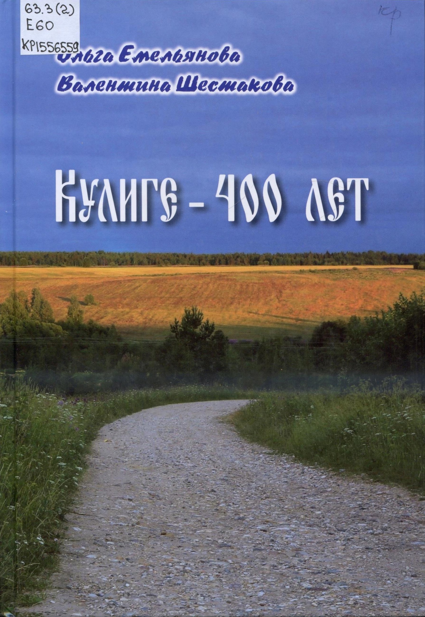 Емельянова Ольга Ивановна. Кулиге – 400 лет / Ольга Емельянова, Валентина Шестакова ; Тотемская районная общественная организация изучения культуры "60-я параллель". – Вологда : Полиграф-Периодика, 2023. – 251 с. : ил., портр., факс. ; 22 см. – Библиогр.: с. 249 (6 назв.). – 120 экз. – ISBN 978-5-91965-338-7.
