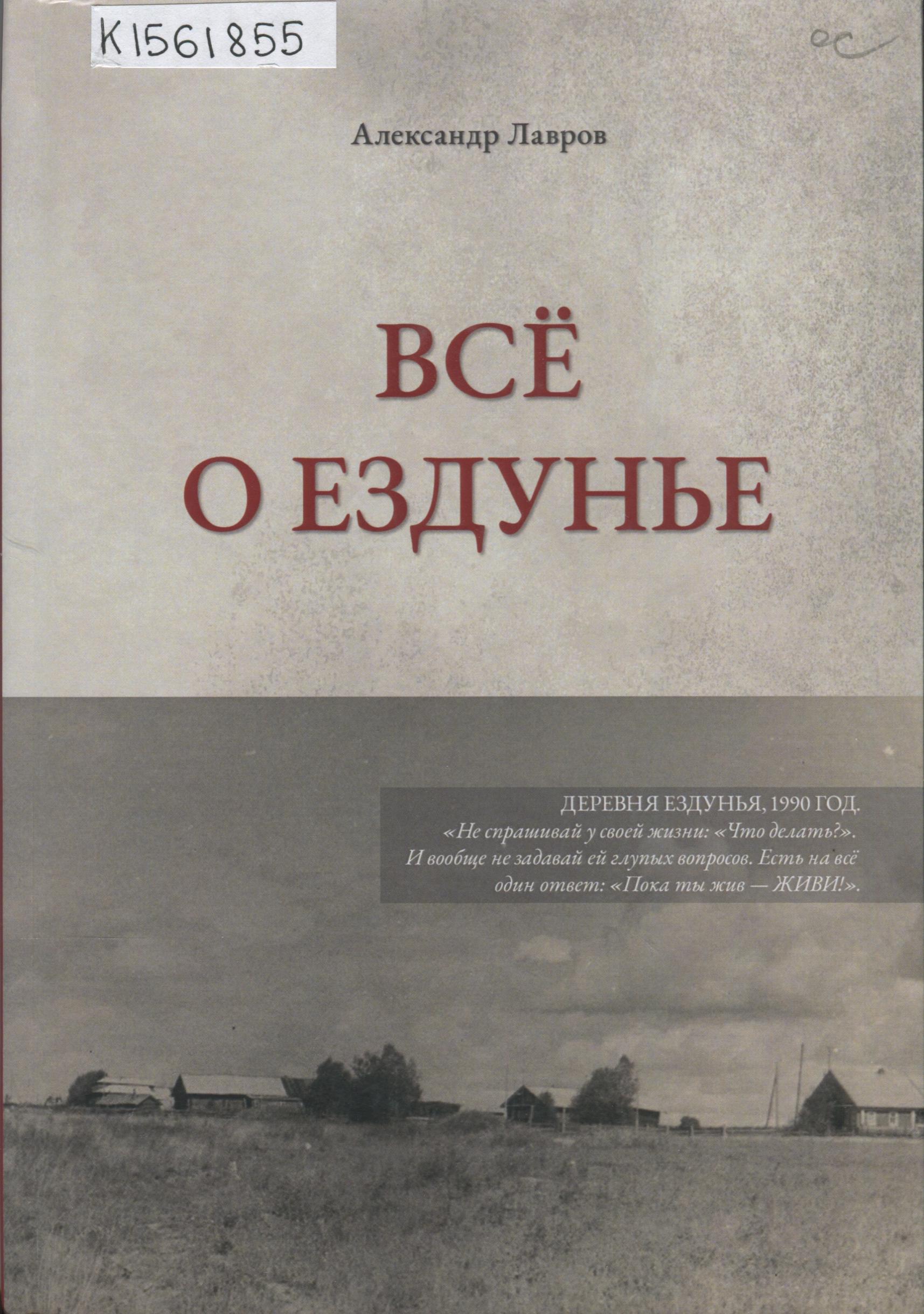 Лавров Александр Серапионович. Всё о Ездунье / Александр Лавров. – Санкт-Петербург : СУПЕР Издательство, 2023. – 110, [1] с., [5] л. ил. : ил., портр., факс., табл. ; 21 см. – 100 экз. – ISBN 978-5-9965-2692-5.