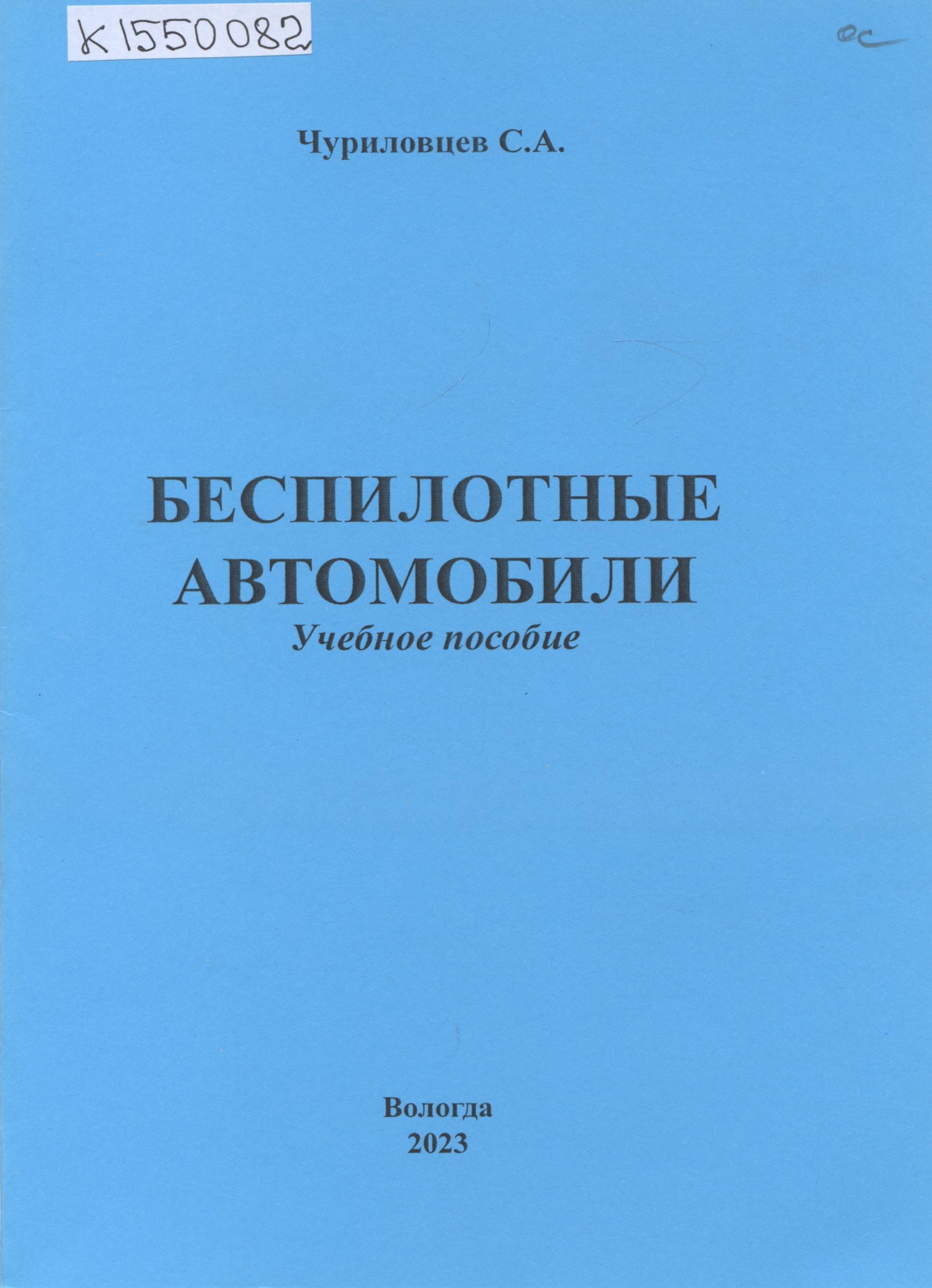 Чуриловцев Сергей Анатольевич. Беспилотные автомобили : учебное пособие / Чуриловцев С. А. – Вологда : Полиграф-Периодика, 2023. – 13 с. ; 20 см. – Библиогр.: с. 13. – 22 экз. – ISBN 978-5-91965-312-7.
