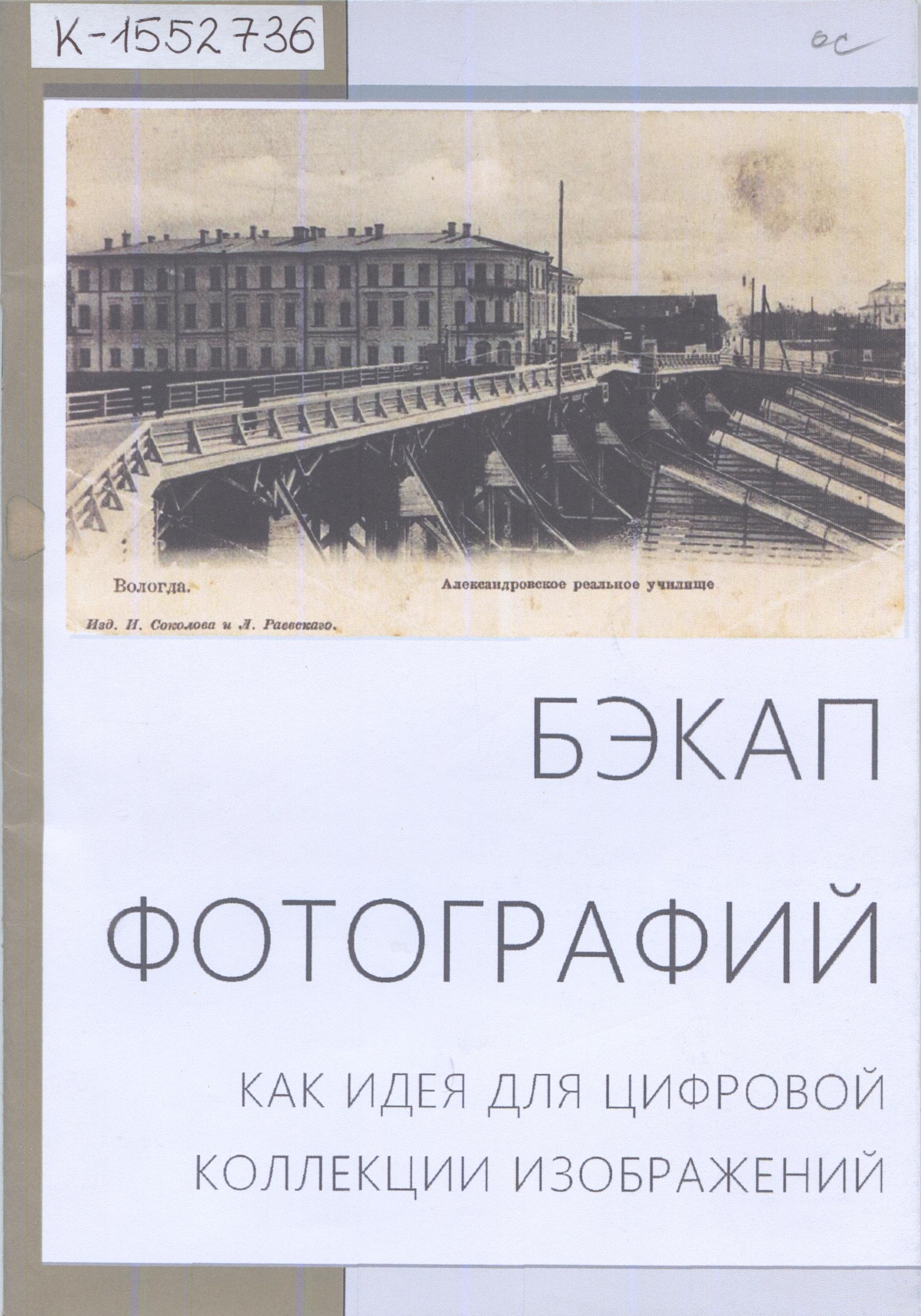 Бэкап фотографий как идея для цифровой коллекции изображений : методические рекомендации для специалистов муниципальных библиотек / Вологодская областная библиотека имени И. В. Бабушкина ; составитель С. А. Жолудева. – Вологда : ВОУНБ, 2023. – 39 с.: ил. – Библиография: с. 37-39 (10 назв.). – ISBN 978-5-904318-90-1.