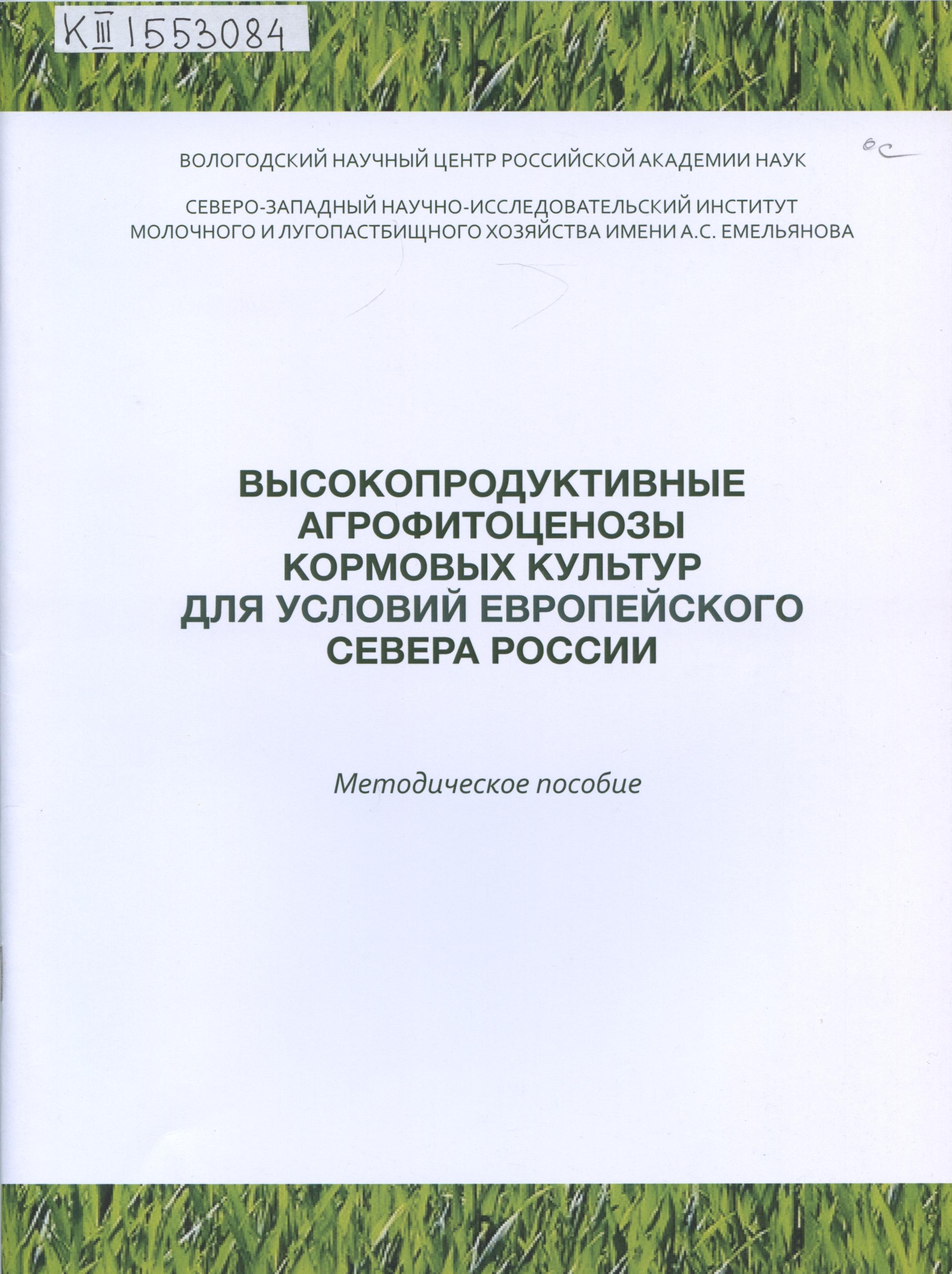 Высокопродуктивные агрофитоценозы кормовых культур для условий Европейского Севера России : методическое пособие / Л. И. Безгодова, Н. Ю. Коновалова, Е. Н. Прядильщикова [и др.] ; Вологодский научный центр Российской академии наук, Северо-Западный научно-исследовательский институт молочного и лугопастбищного хозяйства имени А. С. Емельянова. – Вологда : ВолНЦ РАН, 2023. – 58 с. : ил., табл. ; 27 см. – Библиогр.: с. 43-44 (19 назв.). – 500 экз. – ISBN 978-5-93299-570-9.