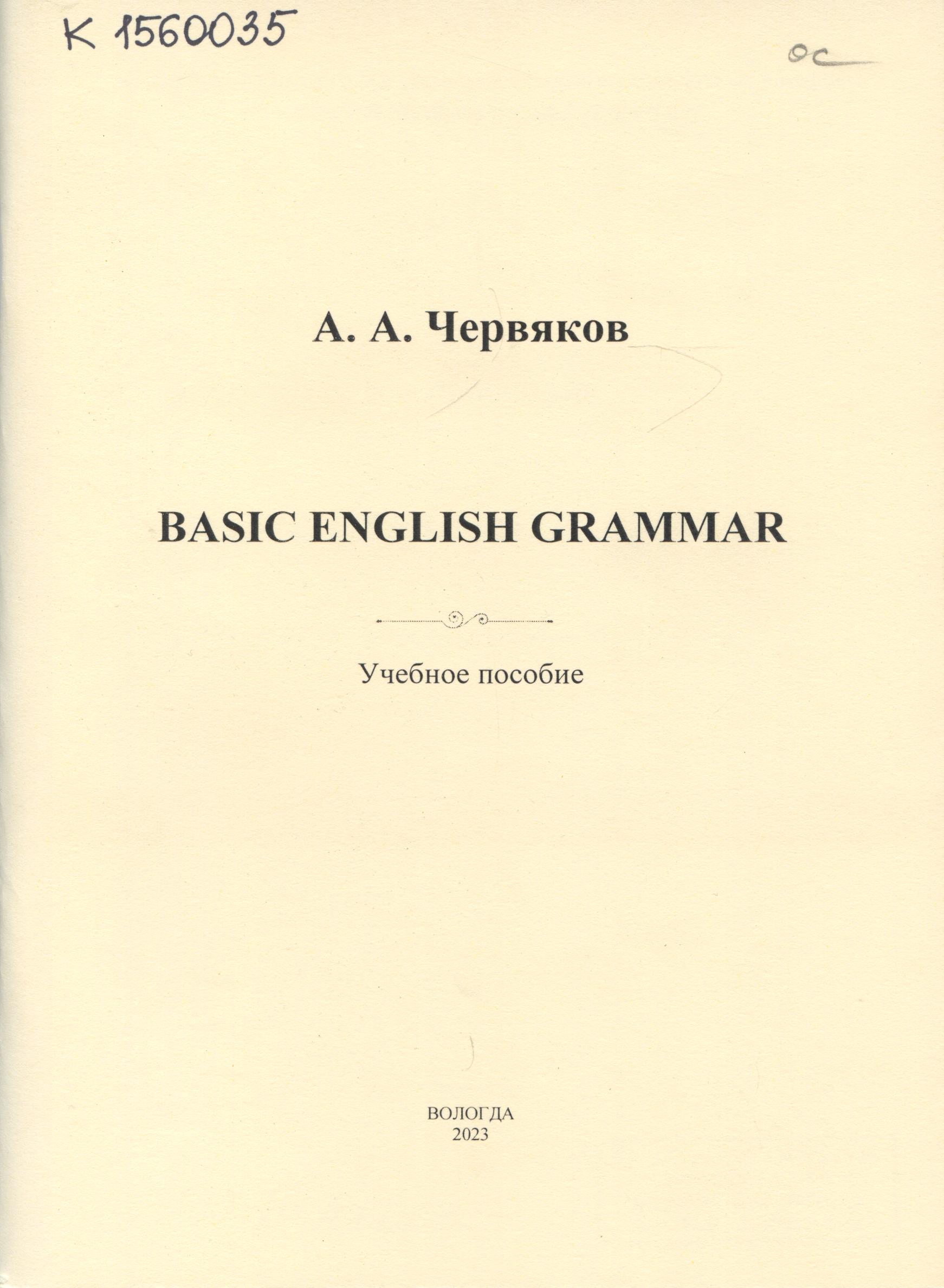 Червяков Алексей Аркадьевич. Basic English Grammar : учебное пособие / А. А. Червяков ; Министерство науки и высшего образования Российской Федерации, Вологодский государственный университет. – Вологда : ВоГУ, 2023. – 87 с.: табл., граф. ; 21 см. – Текст: англ., рус. – Библиогр.: с. 87 (12 назв.). – 300 экз. – ISBN 978-5-907606-81-4.