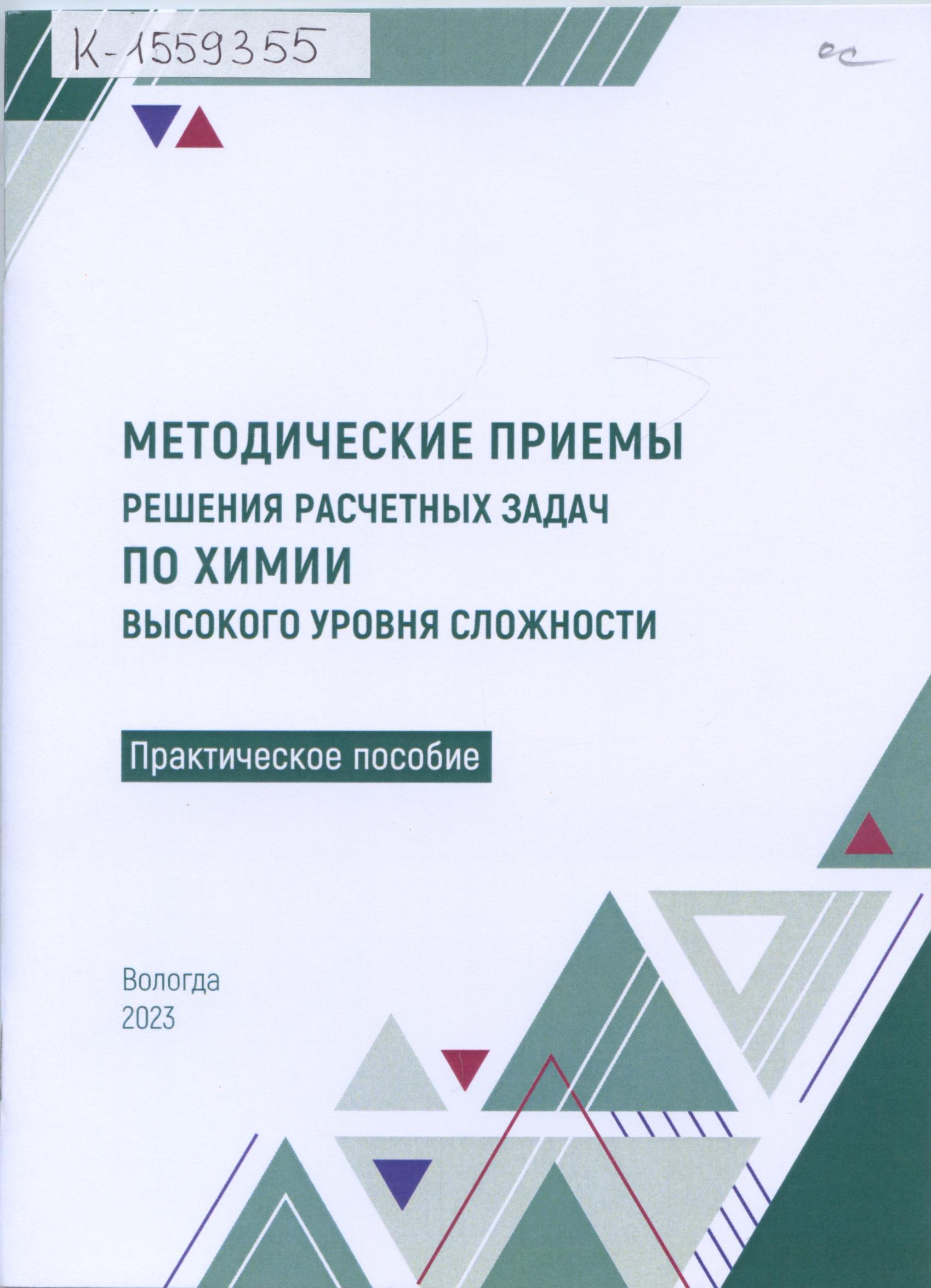 Методические приемы решения расчетных задач по химии высокого уровня сложности : практическое пособие / Департамент образования Вологодской области, Вологодский институт развития образования ; составители: З. С. Марагаева, Л. В. Беляева. – Вологда : ВИРО, 2023. – 58, [2] с.: ил., табл. ; 20 см. – Библиогр.: с. 58 (5 назв.). – 500 экз. – ISBN 978-5-87590-551-3.