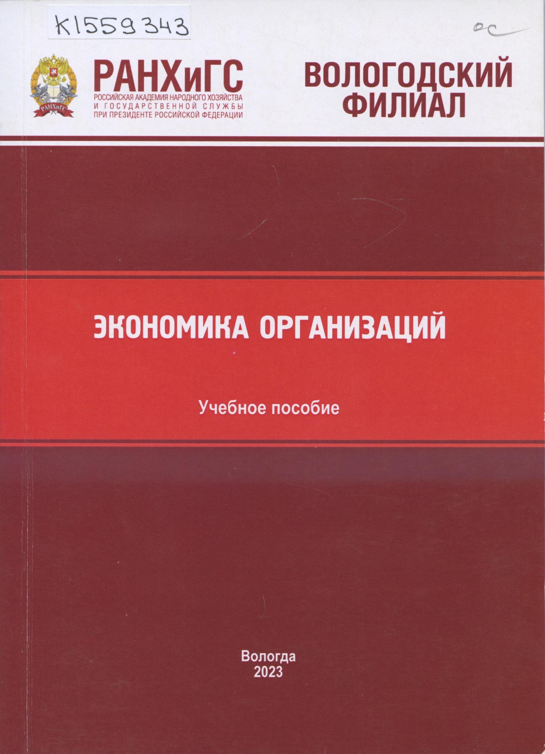Экономика организаций : учебное пособие [для студентов высших учебных заведений] / С. Г. Жестянников, М. В. Андреева, А. С. Барабанов [и др.] ; Российская академия народного хозяйства и государственной службы при президенте Российской Федерации, Вологодский филиал, Кафедра управления и экономики. – Вологда : Сад-огород, 2023. – 143 с.: граф., табл. ; 20 см. – Библиогр.: с. 140 (8 назв.) и в подстроч. примеч. – 40 экз. – ISBN 978-5-907745-05-6.