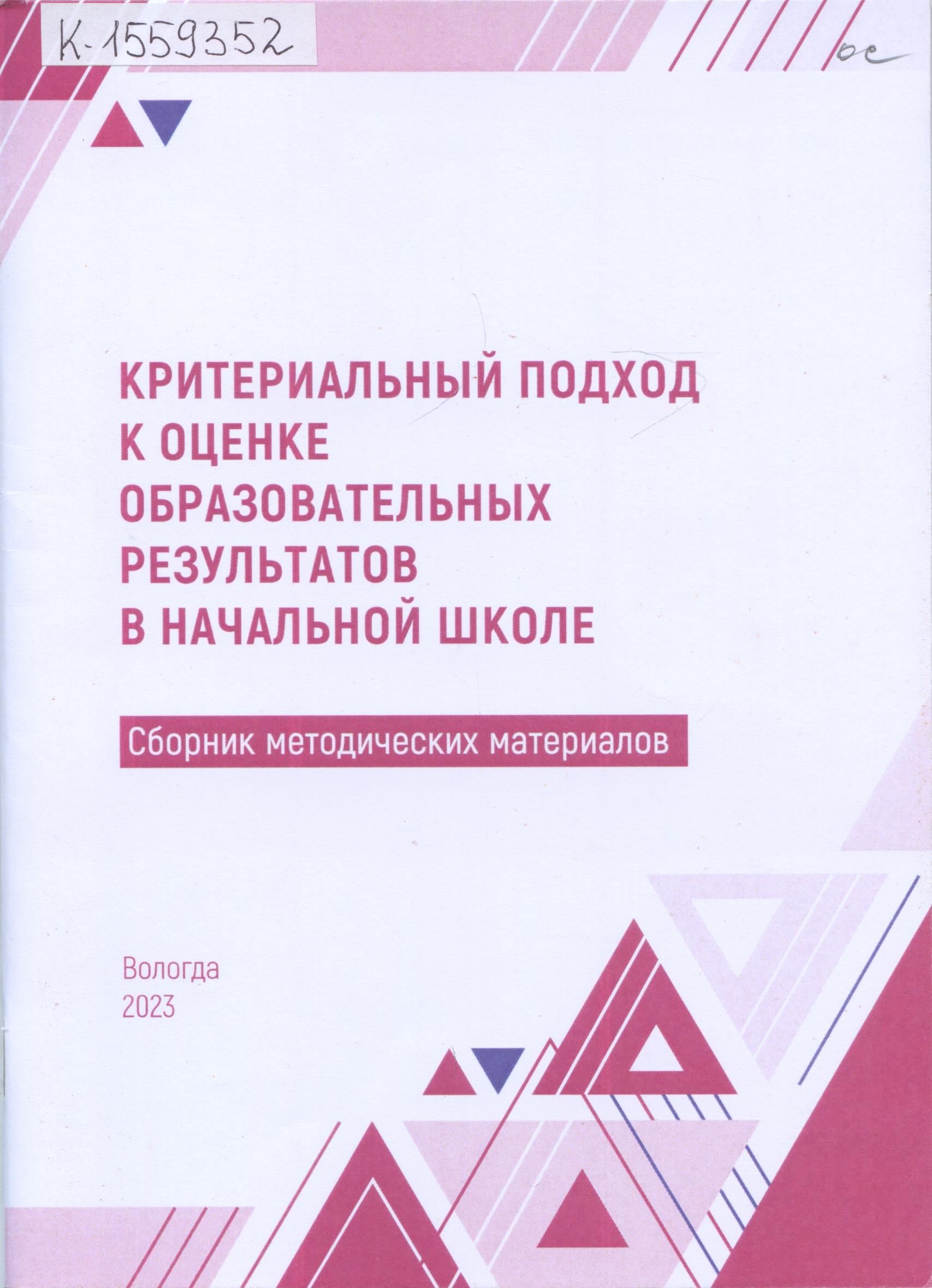 Критериальный подход к оценке образовательных результатов в начальной школе : сборник методических материалов / З. А. Кокорева, О. В. Чудова, Н. В. Шадрина и др. ; Департамент образования Вологодской области, Вологодский институт развития образования. – Вологда : ВИРО, 2023. – 51, [1] с.: табл. ; 20 см. – Библиогр.: с. 51 (9 назв.). – 300 экз. – ISBN 978-5-87590-552-0.