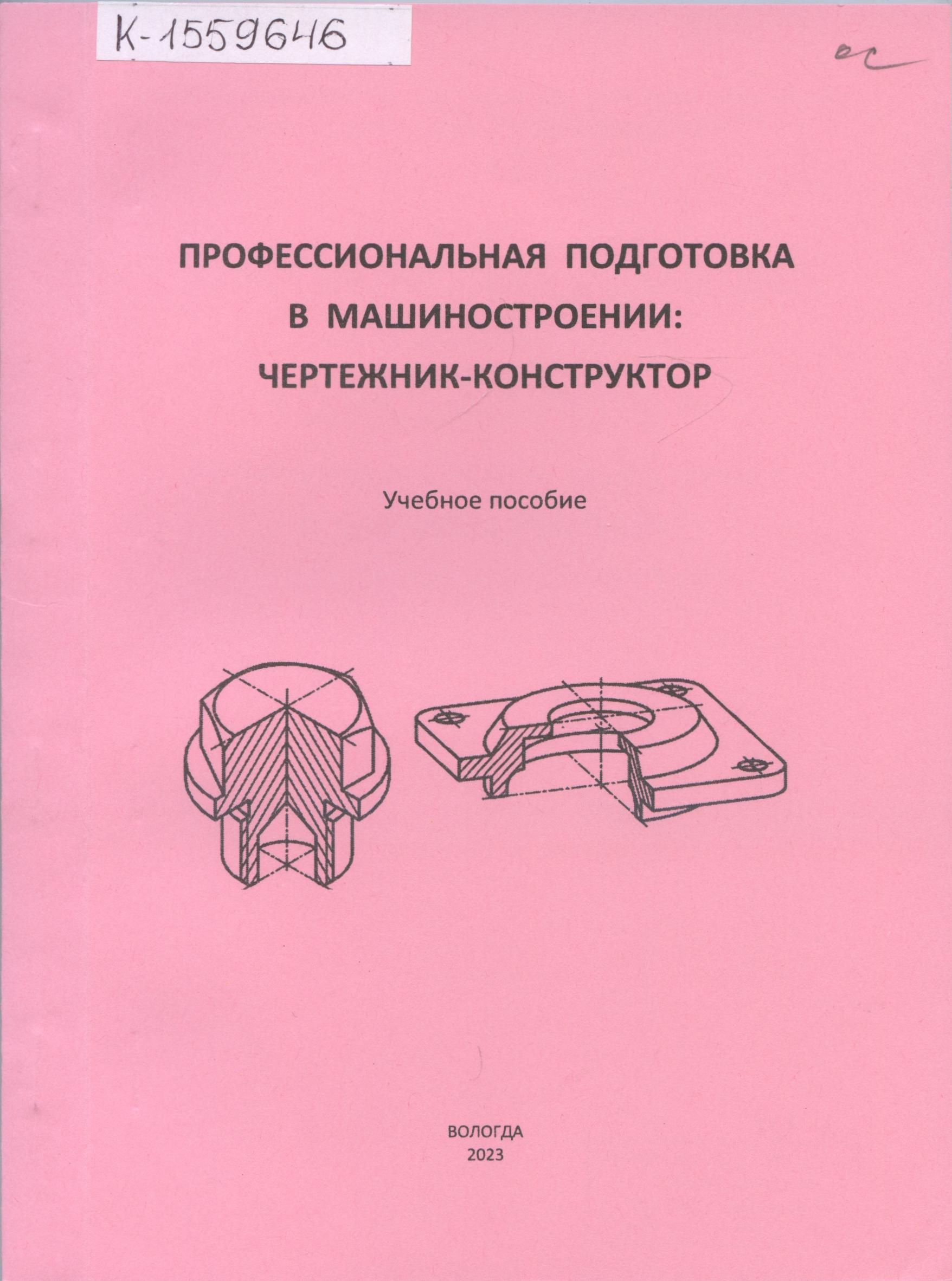 Профессиональная подготовка в машиностроении: чертёжник-конструктор : учебное пособие / Д. А. Богданов, Н. А. Бормосов,С. А. Фролов, В. В. Яхричев ; Министерство науки и высшего образования Российской Федерации, Вологодский государственный университет. – Вологда : ВоГУ, 2023. – 159 с. : ил. ; 20 см. – 300 экз. – ISBN 978-5-907606-73-9.
