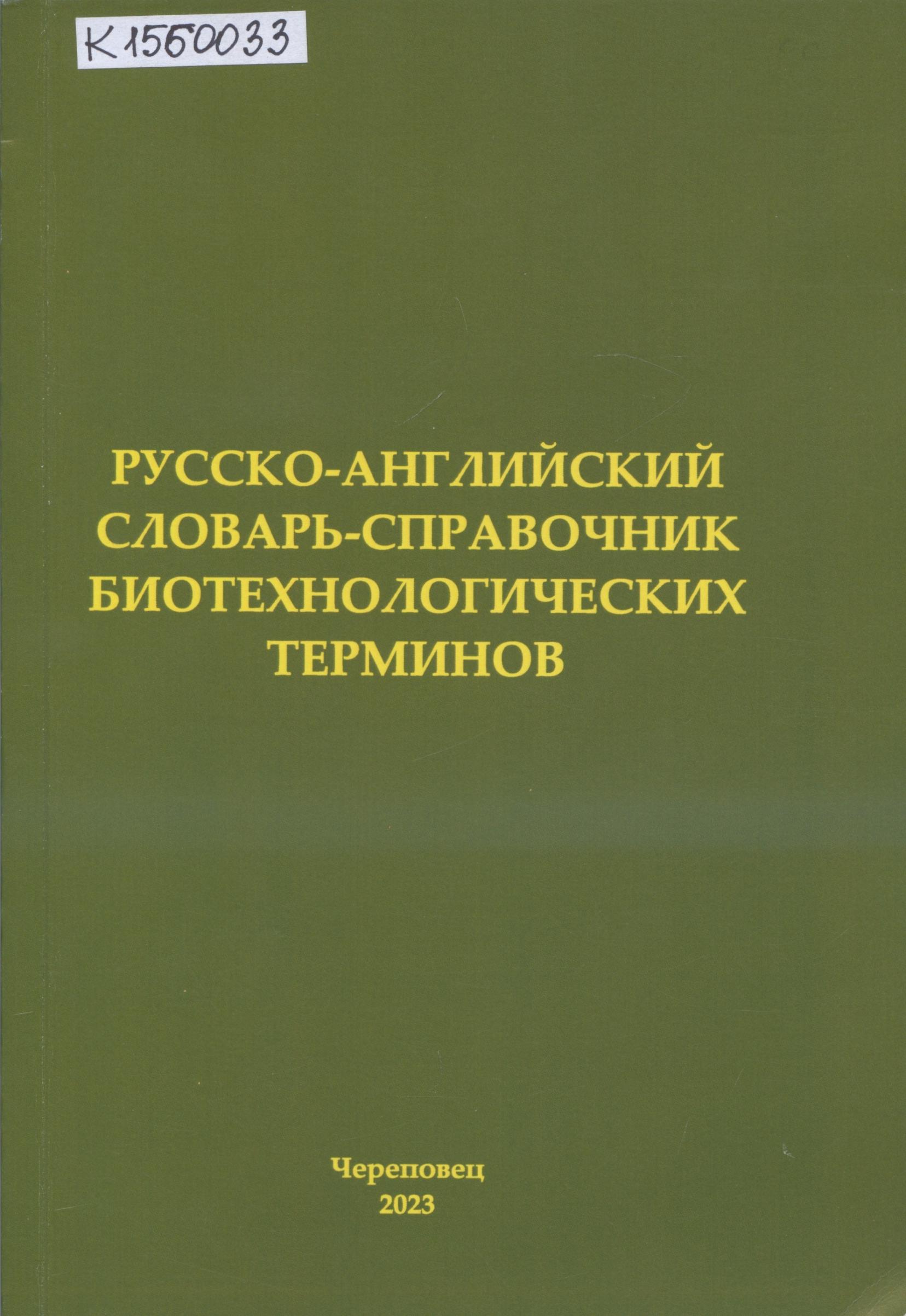 Русско-английский словарь-справочник биотехнологический терминов / О. В. Новиченко, Ю. И. Рябухин, М. Шахин [и др.]. – Череповец : Череповецкий государственный университет, 2023. – 371 с. ; 21 см. – 500 экз. – ISBN 978-5-85341-956-8.