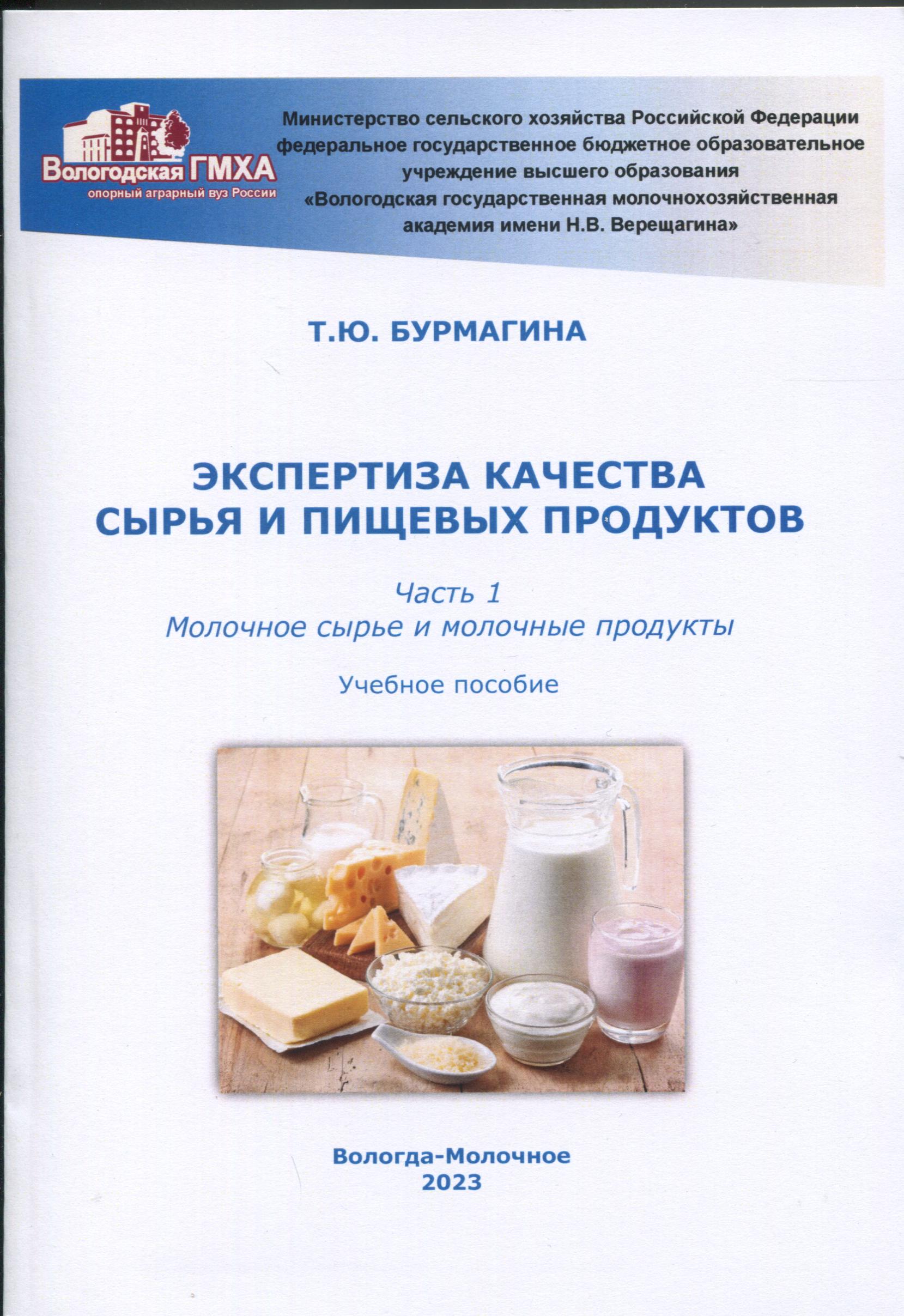 Бурмагина Татьяна Юрьевна. Экспертиза качества сырья и пищевых продуктов. Часть 1. Молочное сырье и молочные продукты: учебное пособие / Т.Ю. Бурмагина. – Вологда ; Молочное : Вологодская ГМХА, 2023. – 143 с.: ил., табл. – 300 экз. – ISBN 978-5- 98076-383-1.