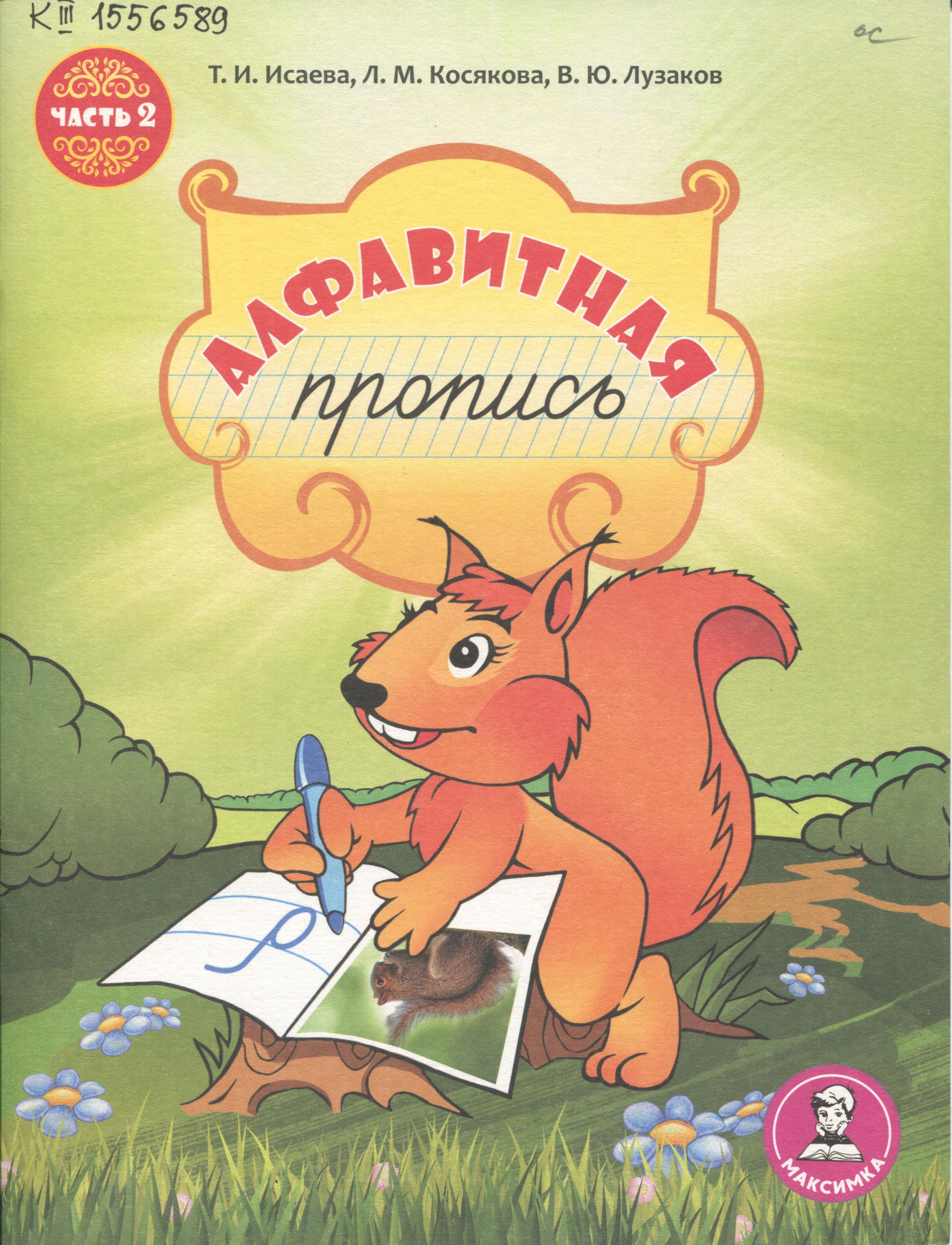 Исаева Т. И. Алфавитная пропись. В 2 частях. Часть 2 / Т. И. Исаева, Л. М. Косякова, В. Ю. Лузаков. – 2-е изд. – Москва : Ступени знаний ; Вологда : Полиграф-Периодика, 2023. – 32, [1] с. : цв. ил. ; 26 см. – 10420 экз. – ISBN 978-5-91965-323-3 (общ.). – ISBN 978-5-91965-325-7 (ч. 2)
