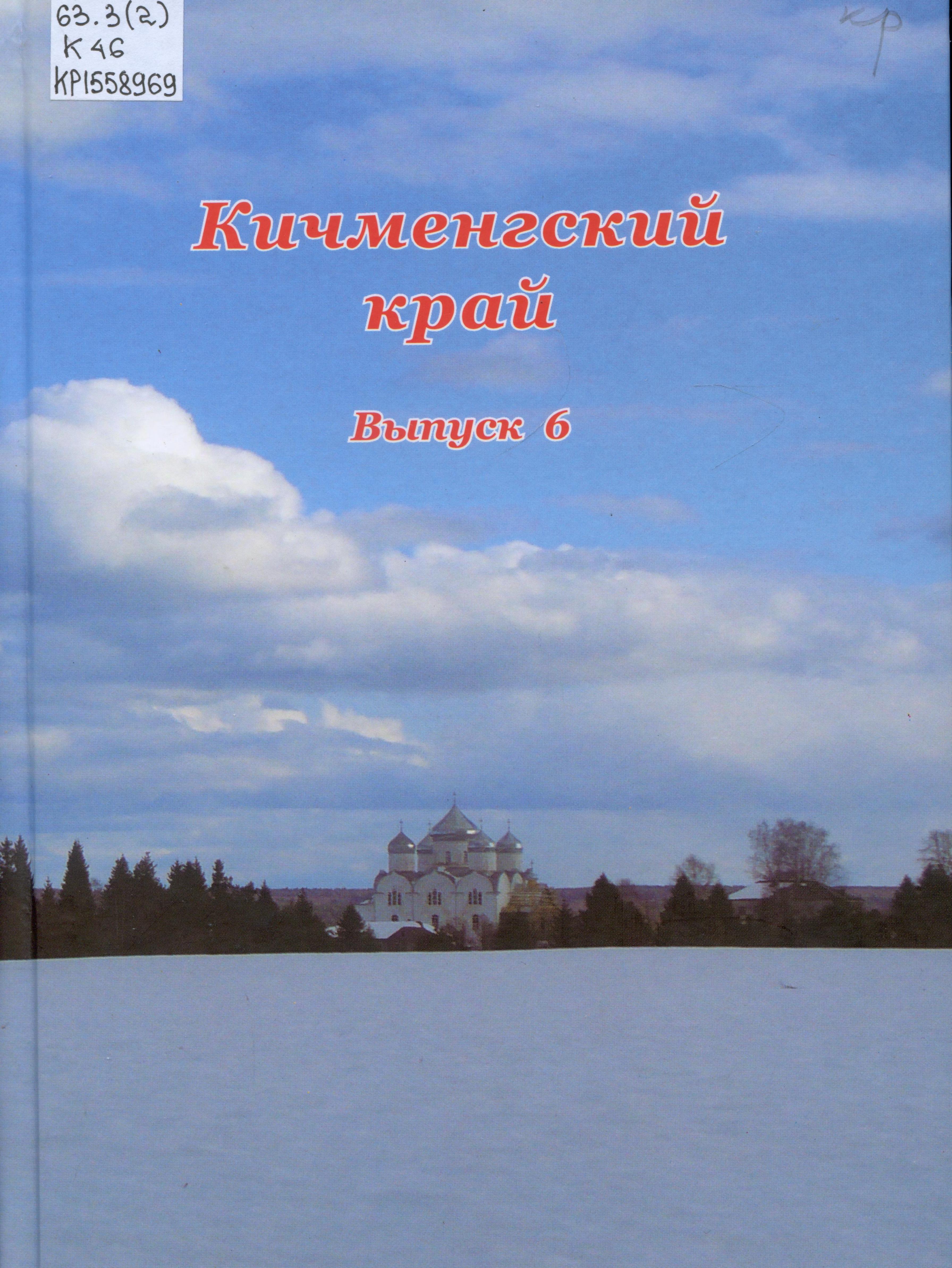 Кичменгский край : материалы Глубоковских чтений. Выпуск 6. / Администрация Кичменгско-Городецкого муниципального округа, Кичменгско-Городецкий краеведческий музей ; главный редактор С. А. Гладких . – Кичменгский Городок, [Вологодская обл. : б. и.], 2023. – 175 с., [4] л. ил., портр., карт ; 21 см. – Библиогр. в конце ст. – 300 экз. – ISBN 978-5-906619-97-6.