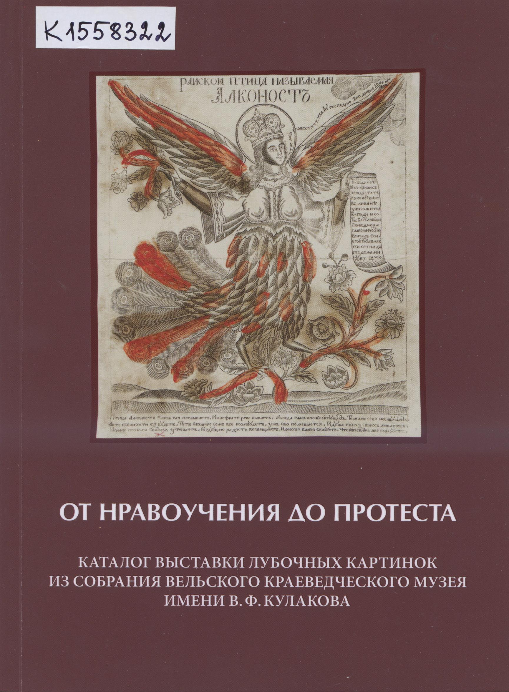 В каталоге представлены экспонаты выставки «От нравоучения до протеста» из фондов Вельского краеведческого музея. Цель данного издания – представить уникальную коллекцию лубочных картинок музея, показать сложную историю ее формирования и ввести ее в научный оборот. Книга подготовлена издательством «Древности Севера». Адресована всем, кто интересуется историко-культурным наследием Поважья и народной художественной культурой России.