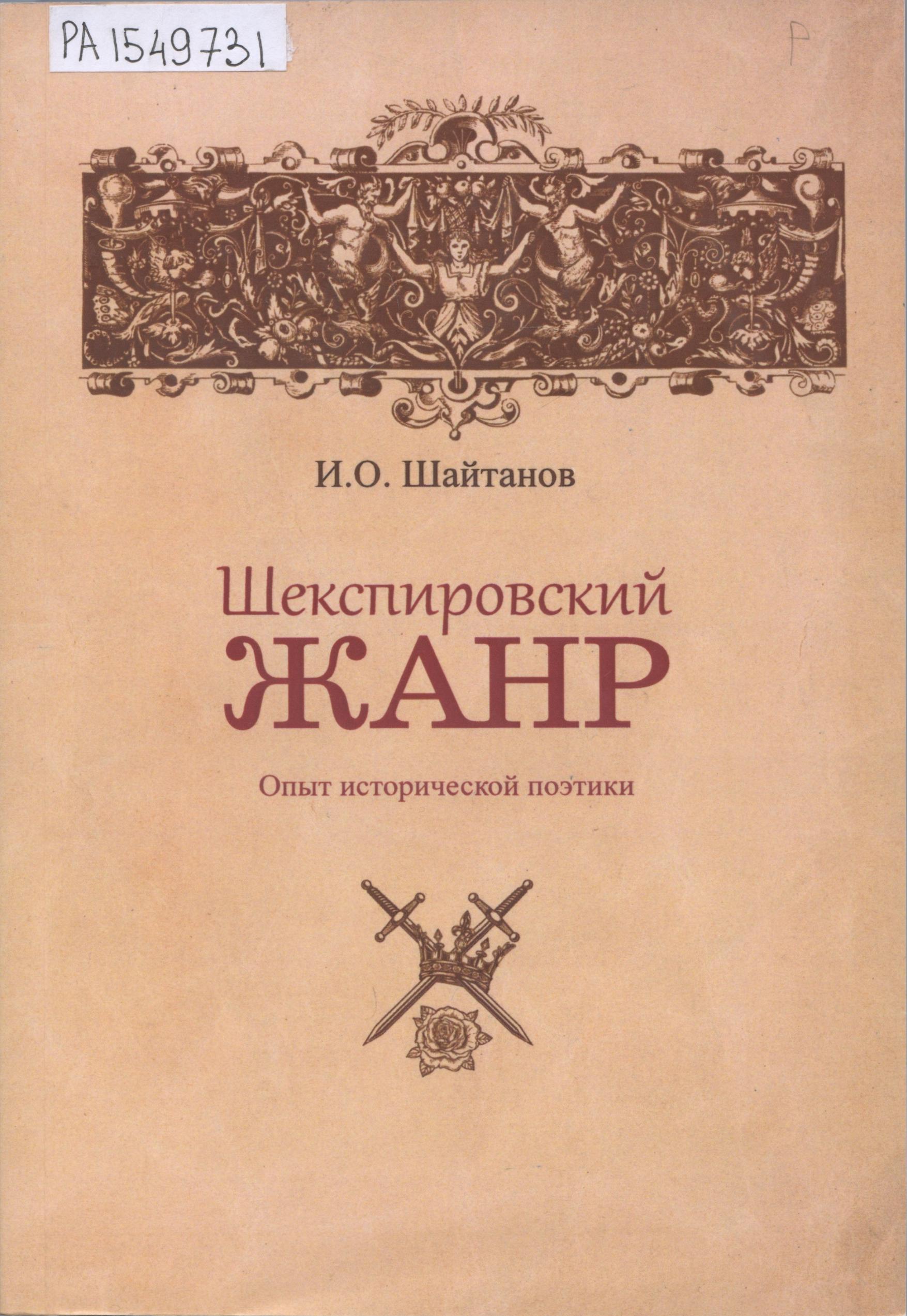 Шайтанов Игорь Олегович. Шекспировский жанр : опыт исторической поэтики / И. О. Шайтанов ; [Российский государственный гуманитарный университет]. – Москва : Издательский центр РГГУ, 2023 . – 395, [4] с. : факс. ; 22 см. – Рез. англ. –Библиогр. в подстроч. примеч. – Указ. произведений Шекспира, имен: с. 391–396. –1000 экз. – ISBN 978-5-7281-3188-5.