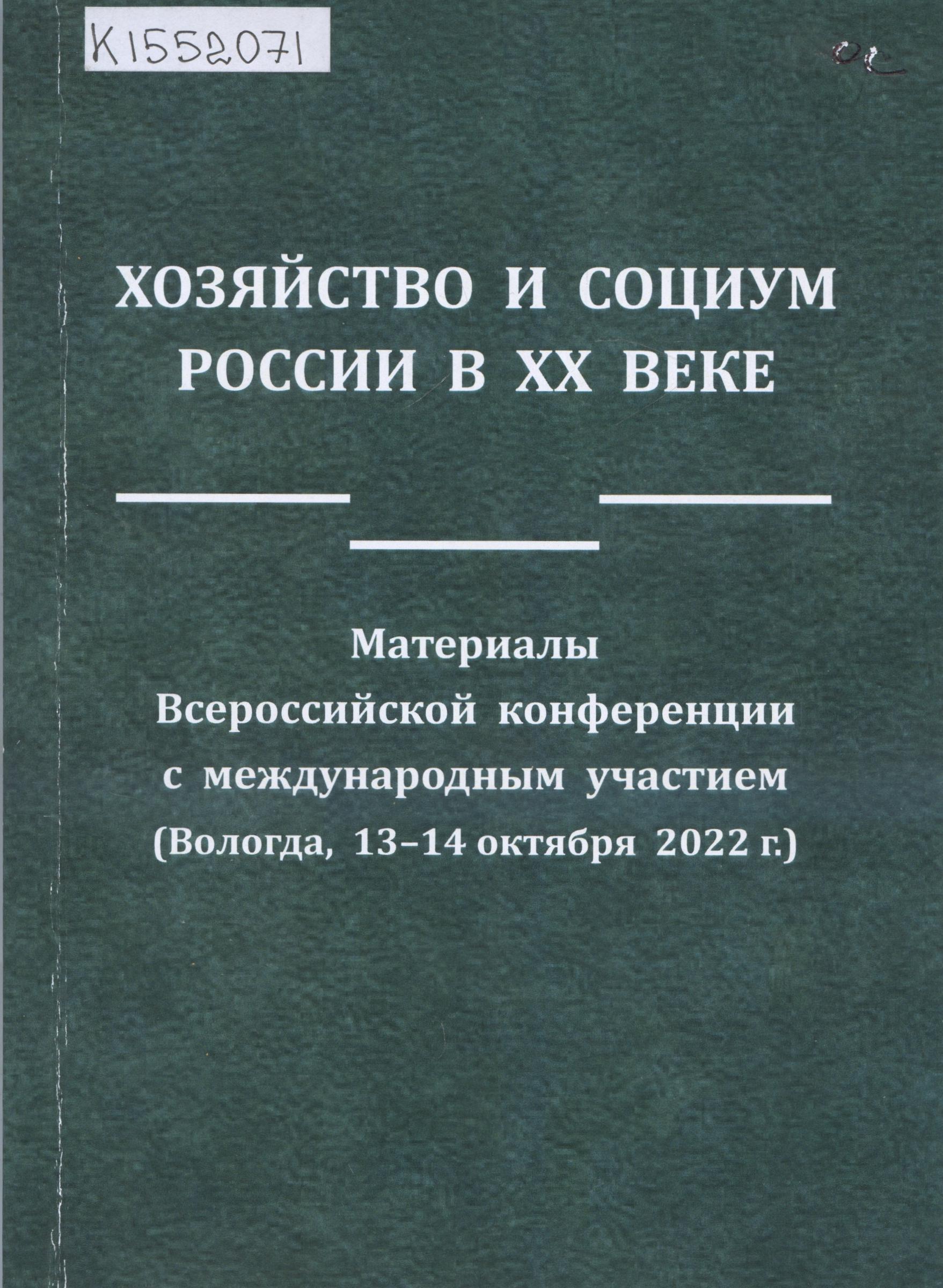 Хозяйство и социум России в ХХ веке : материалы Всероссийской конференции с международным участием (Вологда, 13-14 октября 2022 г.) / Вологодский государственный университет [и др.] ; редакционная коллегия: М. А. Безнин (главный редактор) [и др.]. – Вологда : ВоГУ, 2023. – 187, [1] с: табл. ; 21 см. – В надзаг. также: Науч. совет РАН по экон. истории, Ин-т Рос. истории РАН. – Библиогр. в конце ст. и в подстроч. примеч. – 300 экз. – ISBN 978-5-907606-42-5.