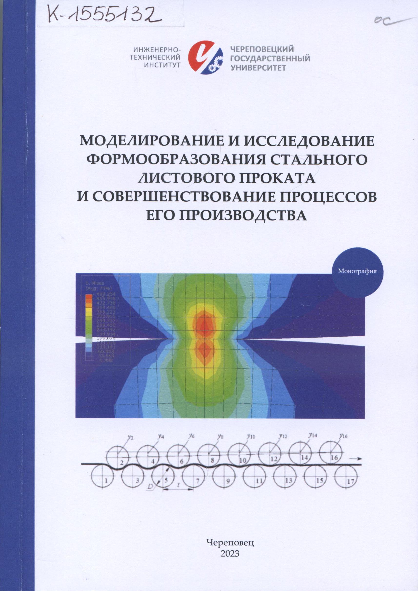 Моделирование и исследование формообразования стального листового проката и совершенствование процессов его производства : монография / Н. Л. Болобанова, П. В. Антонов, К. А. Котов, В. С. Юсупов. – Череповец : ЧГУ, 2023. – 261 с.: ил., портр. ; 21 см. – Библиогр.: с. 236-261 (281 назв.). – 500 экз. – ISBN 978-5-85341-942-1.