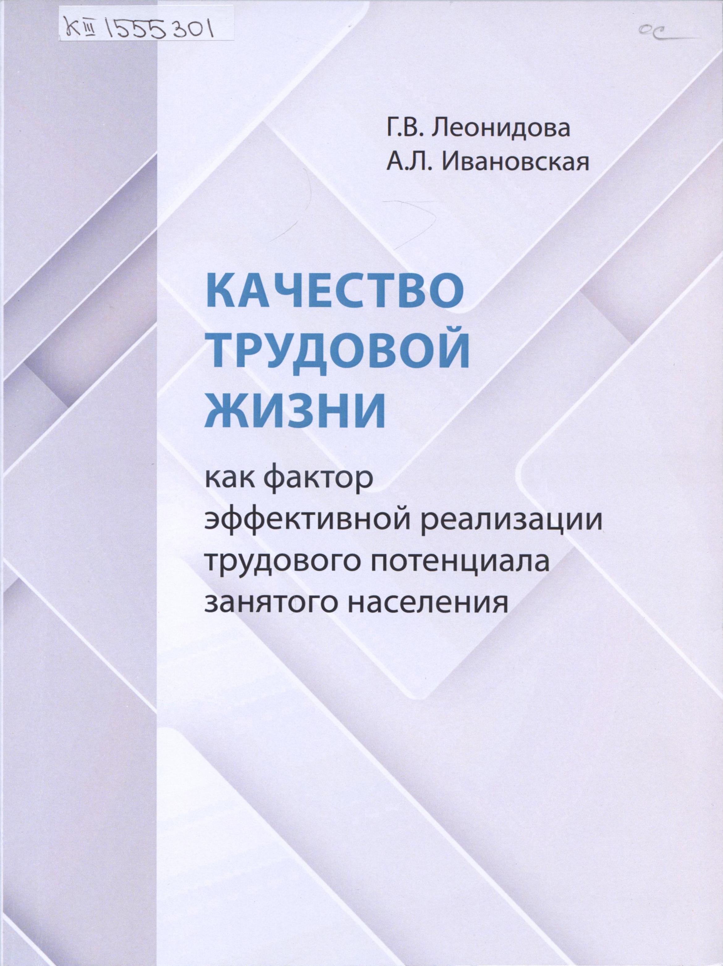 Леонидова Галина Валентиновна. Качество трудовой жизни как фактор эффективной реализации трудового потенциала занятого населения : монография / Г. В. Леонидова, А. Л. Ивановская ; научный руководитель Г. В. Леонидова ; Вологодский научный центр Российской академии наук. – Вологда : ВолНЦ РАН, 2023. – 175 с.: ил., граф., табл. ; 26 см. – Библиогр.: с. 126-136 (150 назв.) и в подстроч. примеч. – 500 экз. – ISBN 978-5-93299-574-7.