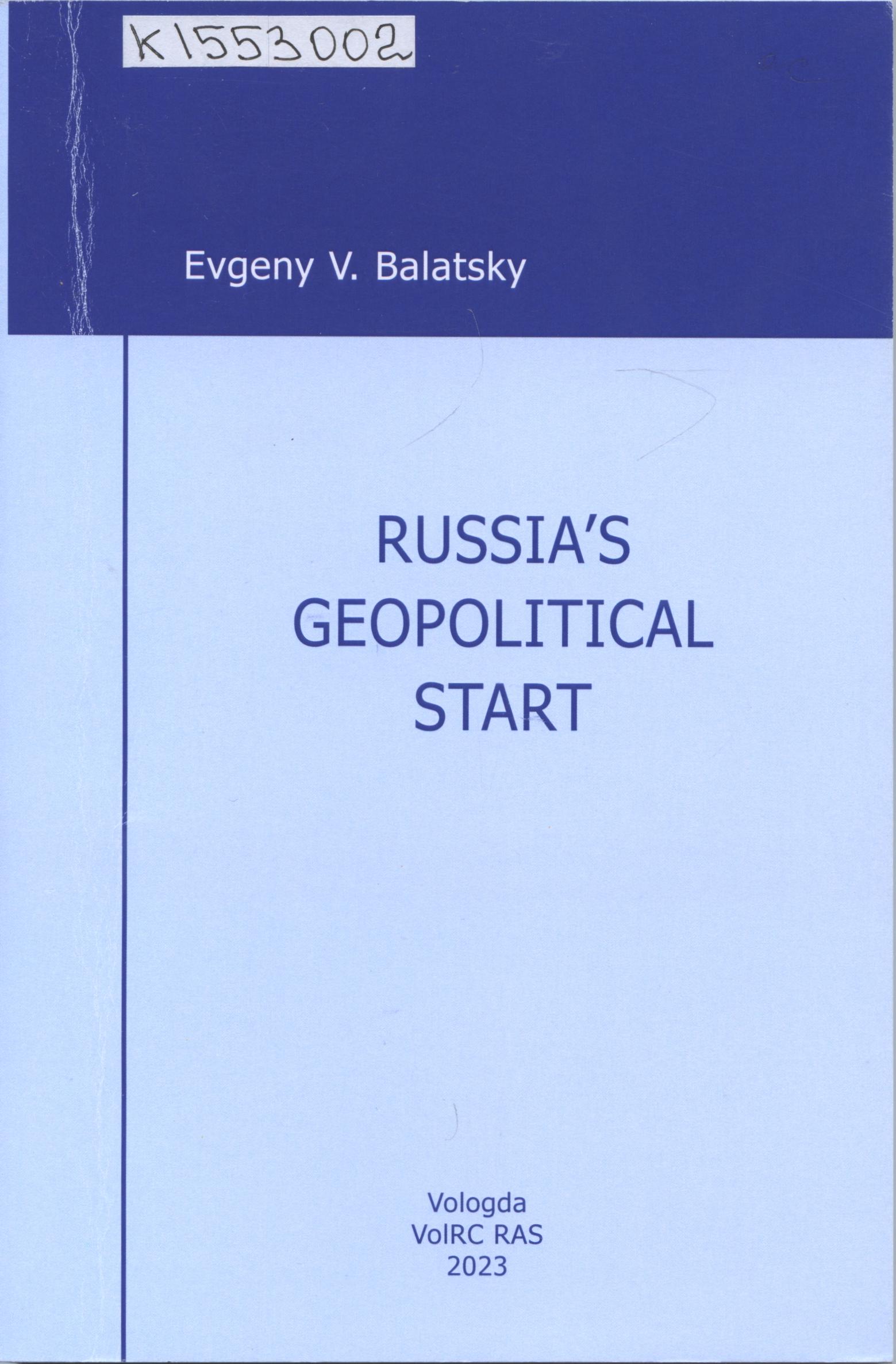 Balatsky Evgeny V. (доктор экономических наук ; 1966-) Russia's geopolitical start / Evgeny V. Balatsky ; Vologda Research Center of the Russian Academy of Sciences. – Vologda : VolRC RAS, 2023. – 119 p.: fig., tab. ; 20 см. – Текст англ. – Библиогр.: с. 113-118 и в подстроч. примеч. – 500 экз. – ISBN 978-5-93299-567-9.