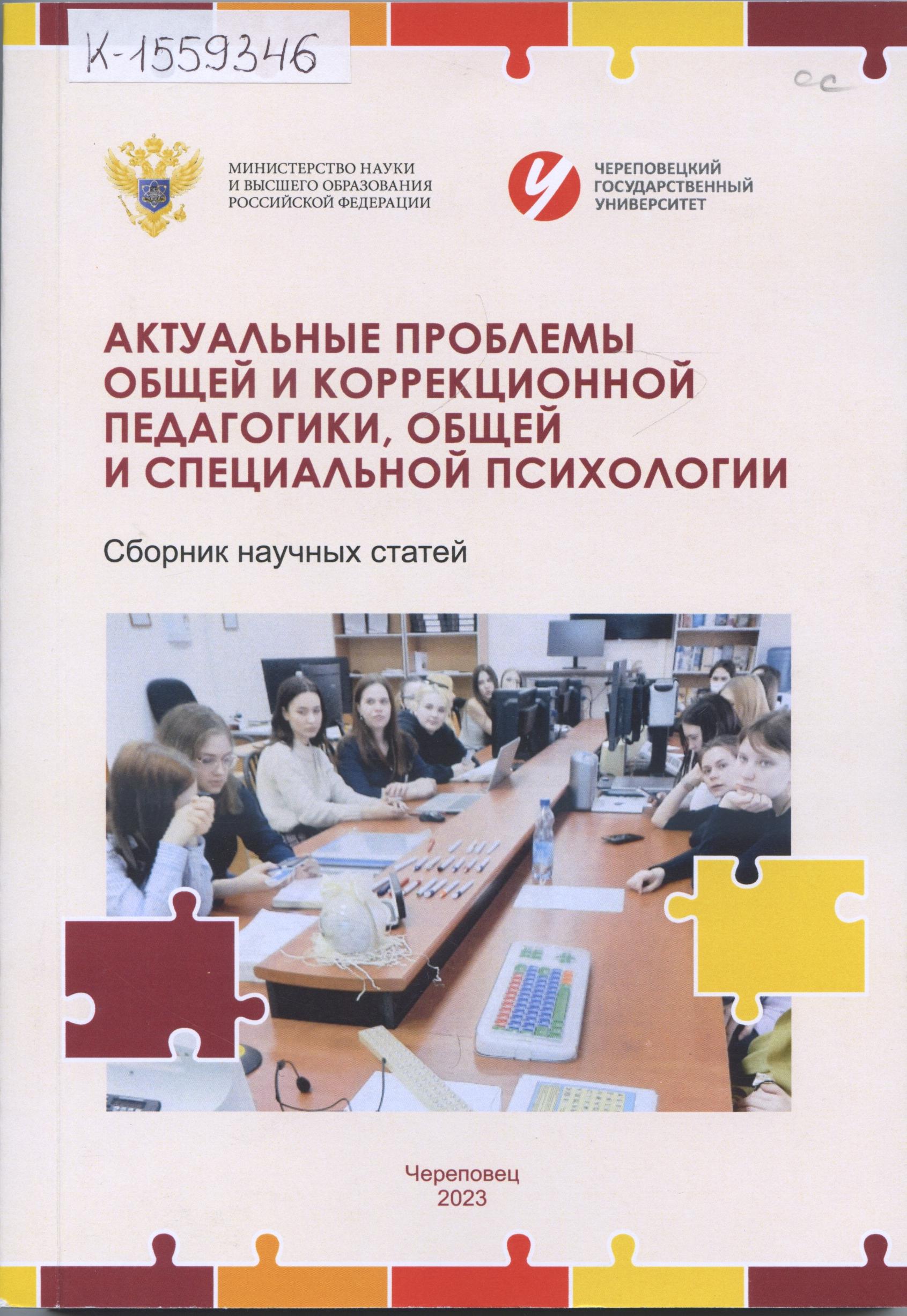 Актуальные проблемы общей и коррекционной педагогики, общей и специальной психологии : сборник научных статей / Министерство образования и науки РФ, Череповецкий государственный университет ; научный редактор Т. В. Гудина. – Череповец : ЧГУ, 2023. – 249 с. ; 21 см. – Библиогр. в конце ст. – 21 экз. – ISBN 978-5-85341-943-8.
