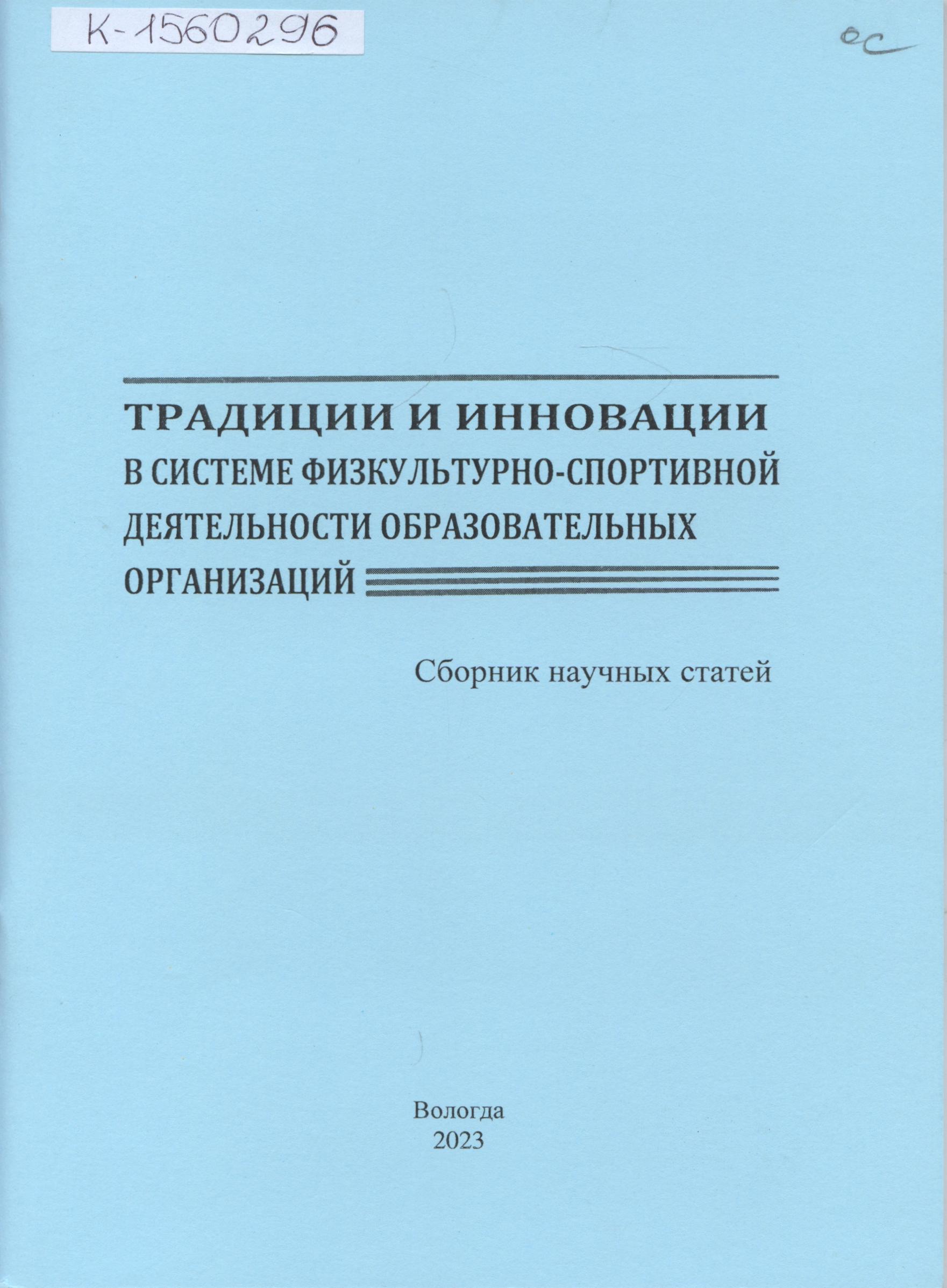 Традиции и инновации в системе физкультурно-спортивной деятельности образовательных организаций : сборник научных статей / Министерство науки и высшего образования Российской Федерации, Вологодский государственный университет ; [ответственный редактор Н. Н. Мелентьева]. – Вологда : ВоГУ, 2023. – 75 с.: ил. ; 21 см. – 500 экз. – ISBN 978-5-907606-86-9.