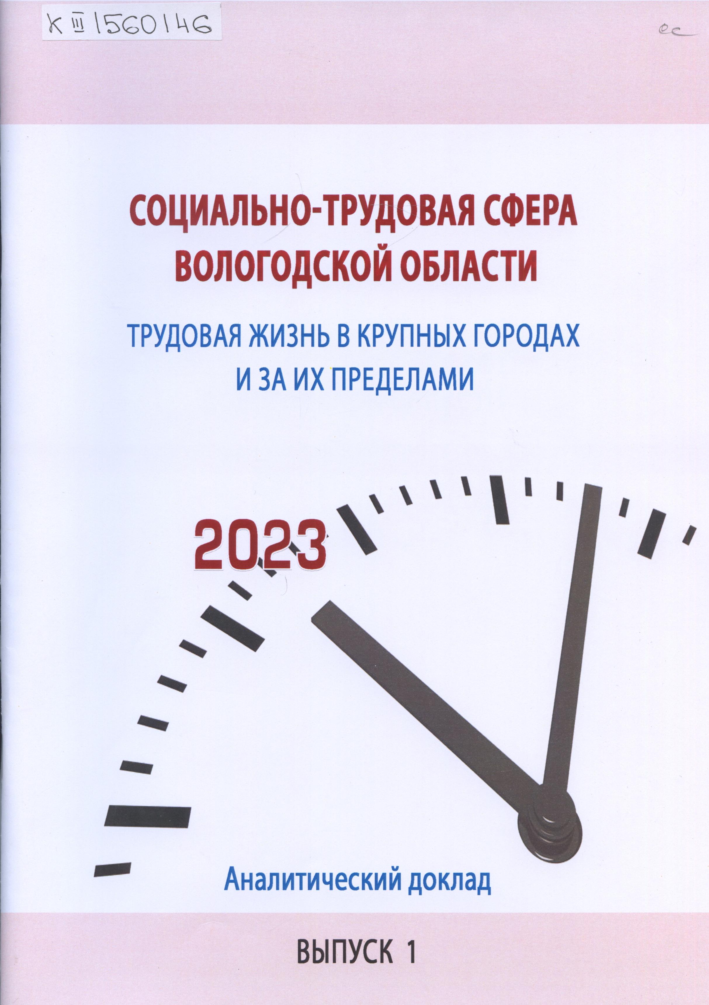 Социально-трудовая сфера Вологодской области: трудовая жизнь в крупных городах и за пределами : аналитический доклад. Вып. 1 / Вологодский научный центр Российской академии наук ; под редакцией А. А. Шабуновой, А. В. Попова. – Вологда : ВолНЦ РАН, 2023. – 76 с. : табл., граф. ; 29 см. – Библиогр.: с. 56–57 (32 назв.) и в подстроч. примеч. – 500 экз. – ISBN 978-5-93299-582-2.