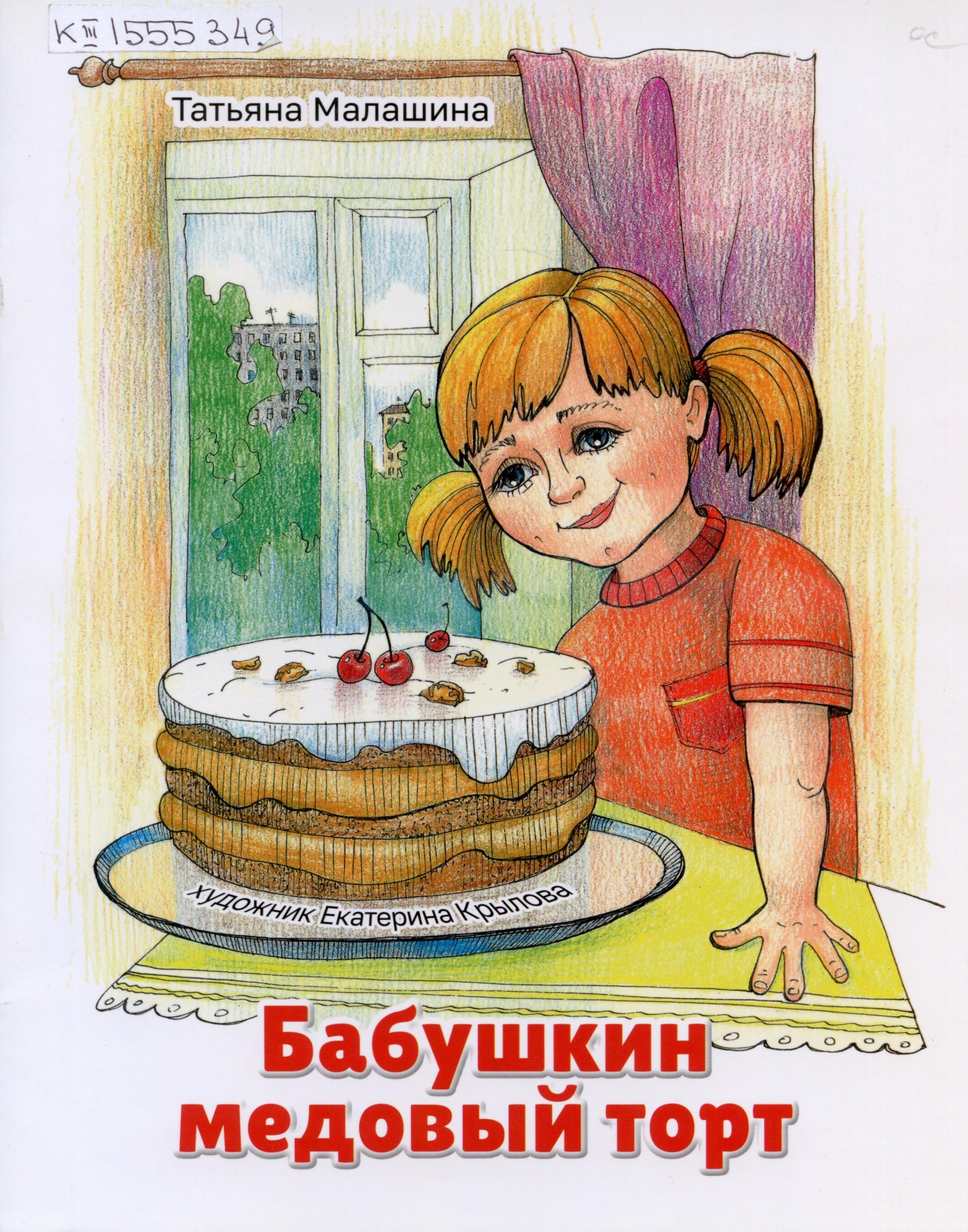 Малашина Татьяна Михайловна. Бабушкин медовый торт : [для детей младшего школьного возраста] / Татьяна Малашина ; [художник Екатерина Крылова]. – Череповец : Танюша, 2023. – 15, [1] с. : цв. ил. ; 26 см. – (Серия "Добрые истории для детей") – 6+. – 500 экз. – ISBN 978-5-6049055-1-7.