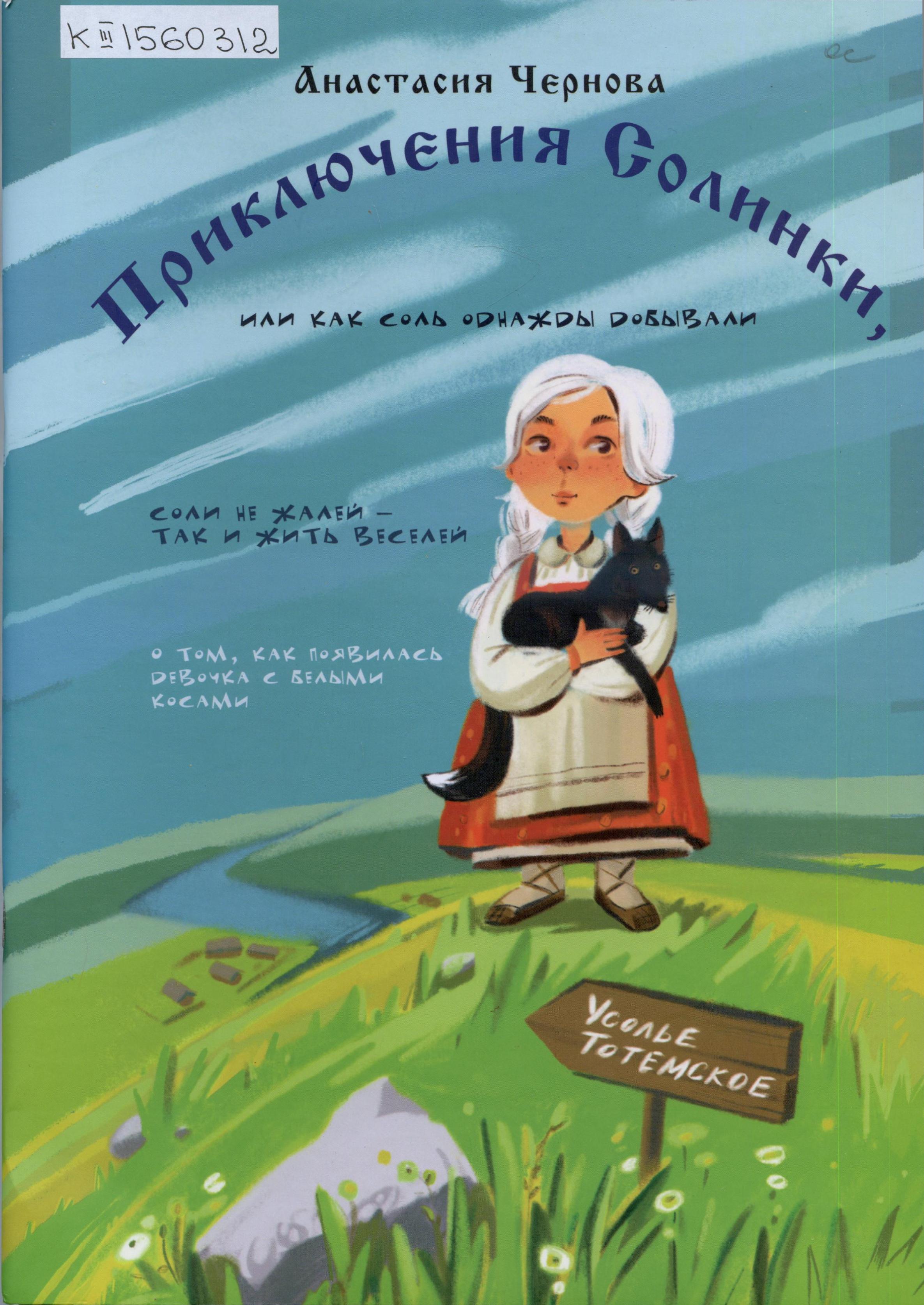 Чернова Анастасия Евгеньевна. (канд. филол. наук, писатель ; 1987-) Приключения Солинки, или Как соль однажды добывали / Анастасия Чернова ; автор рисунков Майстренко Елена Алексеевна. – Москва : Вест-Консалтинг, 2023. – 59 с.: цв. ил. ; 29 см. – 6+. – 250 экз. – ISBN 978-5-91865-752-2.