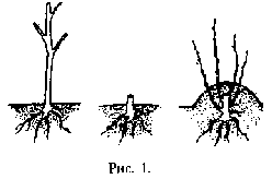 Вертикальные отводки (рис. 1). При размножении вертикальными отводками растение в период покоя срезают до уровня почвы. Отрастающие от основания побеги как можно раньше начинают окучивать, чтобы вызвать образование корней. По мере роста побегов окучивание повторяют, доводя общую высоту холмика земли до 15 - 20 см, но не более чем до половины высоты побегов.