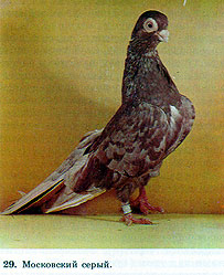 Московские серые турманы (рис. 29). Выведены птицы в Москве, но утвердились как московские серые лишь в начале XIX в. До этого их называли просто "лобачами", так как экстерьерные признаки были нестабильны. При создании серых использовали орловских бородунов, белых и жарых. Только в 20-х годах прошлого столетия голубеводы начали предъявлять к породе определенные требования. Большая заслуга в совершенствовании и утверждении как породы "московских серых" принадлежит московским голубеводам XIX в.
