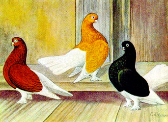 Казанские трясуны (рис. 38). Казанских трясунов относят к группе статных голубей. Само название говорит о их принадлежности к трясунам за их подергивание верхней частью шеи (около головы). Родина этих голубей Казань, о чем подтверждает М. Васильев в журнале "Природа и охота" за 1889 г. В конце XIX и начале XX в. они были очень популярны у голубеводов Казани, ряда городов Волги и Сибири.