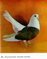 Ростовские чистяки-чилики (рис. 45). Выведены голубеводами Ростова-на-Дону и Ростовской области. Их относят к летно-декоративным, статным голубям-трясунам. Создание породы было начато во второй половине XIX в. и закончено в первой половине XX в. Птицы хорошо размножаются,