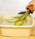 Если растение достаточно мало и его можно взять в руку, попробуйте пополоскать его в тазике с тепловатой водой. Но не делайте этого, если листья нежны и опушены.