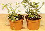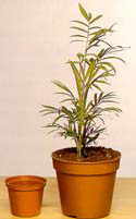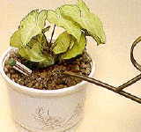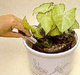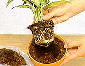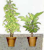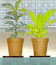 Комнатные растения выглядят лучше и будут успешнее расти, если они сидят в горшках соответствующих размеров. Для растения, изображенного в верхней части страницы, горшок слишком велик - он подавляет растение. Для растения, изображенного ниже, горшок слишком мал - верх тяжел и неустойчив, а почвы в горшке явно недостаточно.