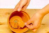 Помните, что почва в глиняном горшке, на дно которого поверх дренажного отверстия положен битый глиняный черепок, будет всасывать влагу не очень эффективно (хотя в отверстие можно вставить небольшой фитиль, отрезанный от капиллярного коврика). Эта система более пригодна для растений в пластиковых горшках, где дренажное отверстие открыто.