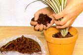Пористый увлажнитель поможет растению только в течение нескольких дней. Убедитесь, что почва влажная, затем наполните увлажнитель водой.