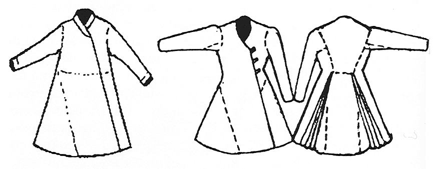 Дорожной верхней одеждой был также армяк. Это разновидность кафтана, изготавливаемого из верблюжьей шерсти — армячины, отсюда и название. Армяк был свободного покроя, халатообразный, длиной до середины икр, без сборок сзади и по бокам и без застежек, но с запахом. Обыкновенно армяки, зипуны и прочую верхнюю одежду подпоясывали низко кушаками. Азям был такого же покроя, что и армяк, но изготавливался из понитка или холста, имел узкие рукава и доходил до колен. В XVI в. появился еще один вид одежды — бекеша — короткий зимний кафтан, отороченный мехом (по имени венгерского щеголя Каспара Бекеша).