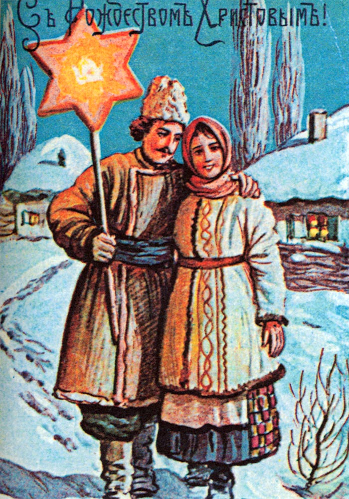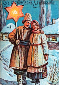 Колядующие, или христославы, — это молодежь и дети, которые пели рождественские песни - колядки, прославлявшие хозяина и его дом. За колядку полагалось христославов вознаградить: чаще всего угощали чем-либо вкусным. Дети ходили с бумажной звездой, которая раскрашивалась красками и освещалась изнутри свечой. Бумага крепилась на деревянный каркас из лучины, имеющей форму 8-конечного креста. Сама звезда была с восьмью концами. Хозяева не скупились, ибо не встретить радушно колядующих считалось большим грехом и оскорблением. По улицам провозили девушку в рубахе, надетой на теплую одежду, — Коляду.