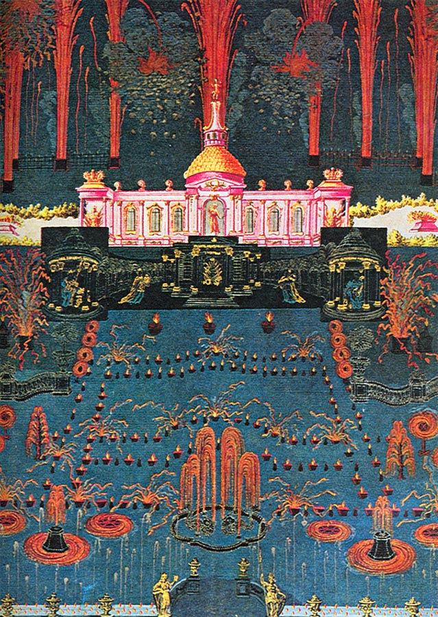 Фейерверк по случаю бракосочетания Екатерины II и Петра III в Санкт-Петербурге в 1745 г.